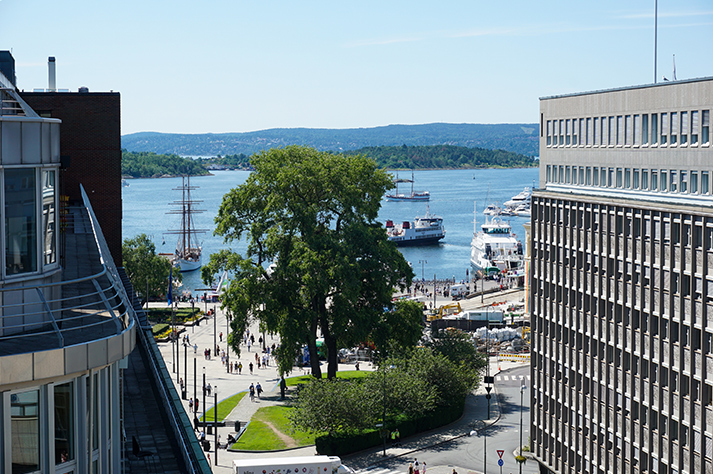 The suite has two large private terraces measuring approx. 100 sqm in total. One terrace is in connection with the kitchen, dining and lounge area downstairs. Here you can admire the lovely view towards the Oslo Fjord and enjoy your meals outside.