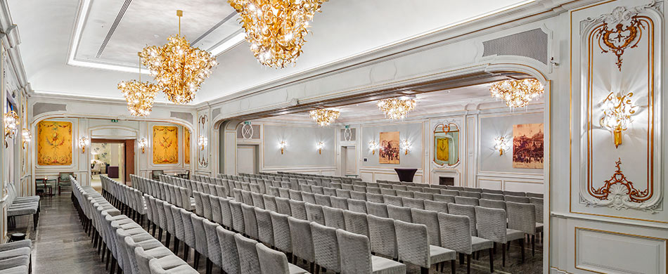 Vårt største og mest fleksible lokale kan ta inntil 250 gjester til møter og middag eller 300 til mingling. I forbindelse med vår siste renovering på Hotel Continental, fikk Teatersalen en omfattende oppgradering samt nye fantastiske lysekroner.